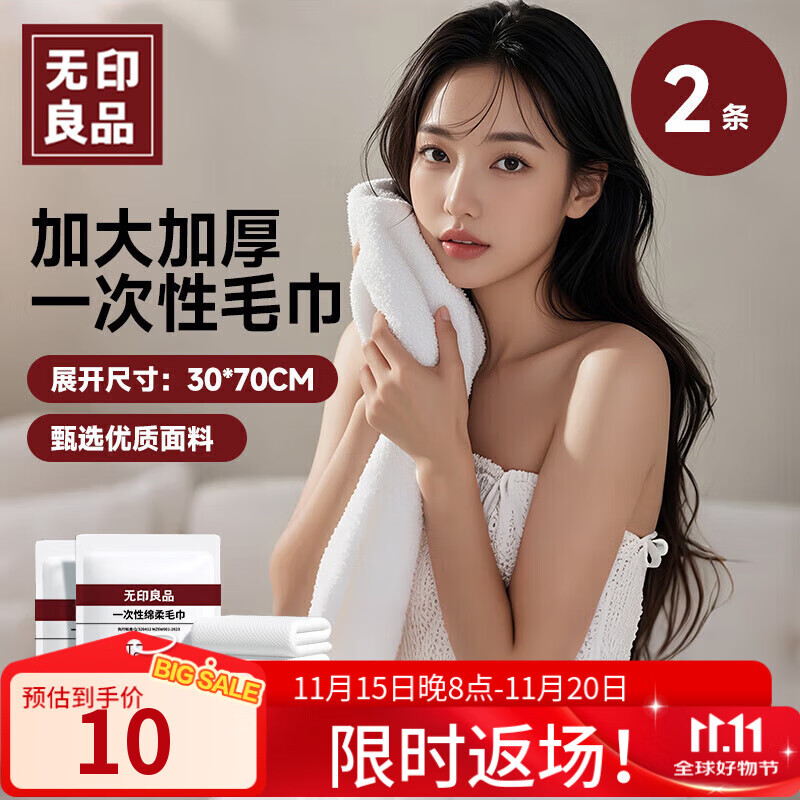 无印良品旅行压缩毛巾一次性洗脸巾旅游加厚加大洁面巾擦脸巾-单包两条装