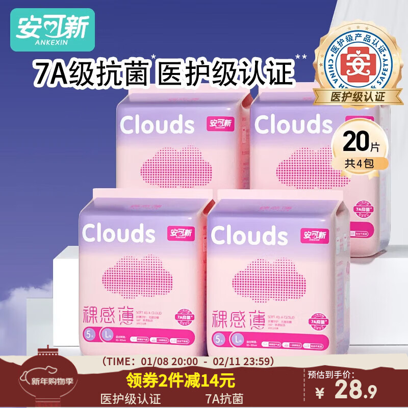 安可新医护级7A抗菌裸薄安睡裤安心裤孕产妇卫生巾夜安裤女经期XL码20片