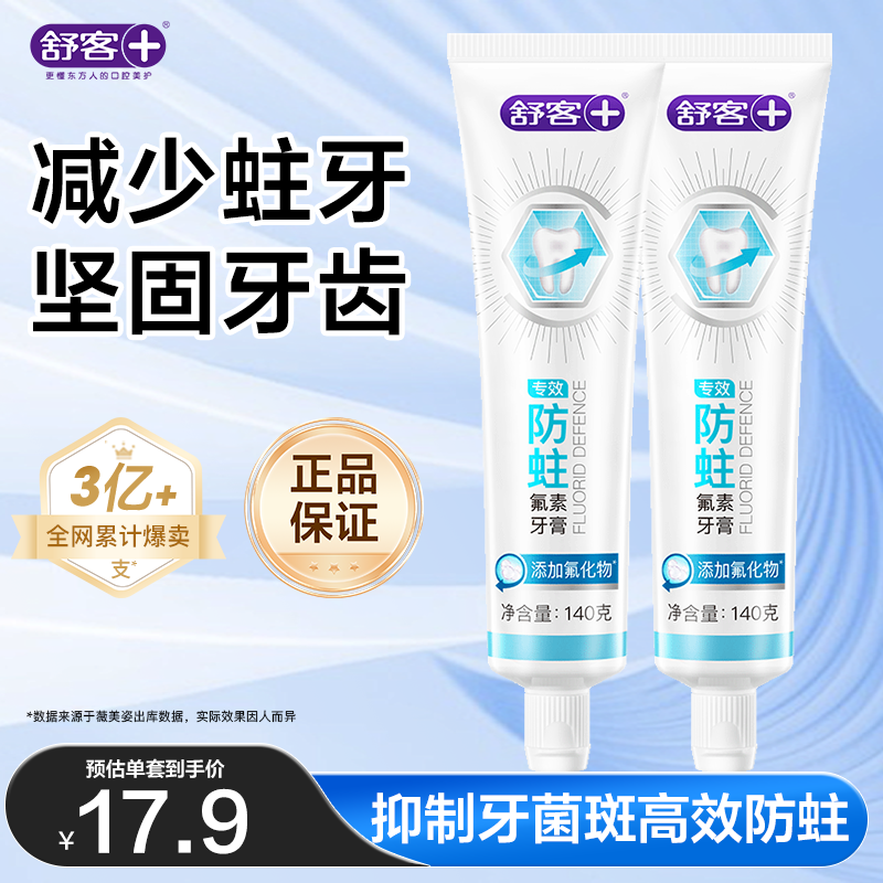 舒客专效防蛀氟素牙膏 防蛀固齿清新口气 2支共280g新老随机发