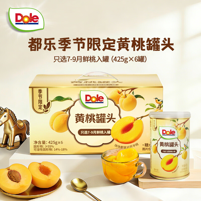 都乐(DOLE)【季节限定】黄桃罐头425g*6罐 水果罐头 水果礼盒 休闲零食