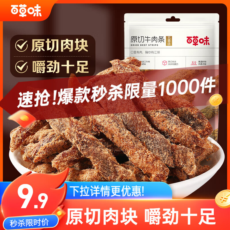 百草味牛肉条五香味50g 肉干肉脯特产肉类小吃即食熟食 新老包装随机发