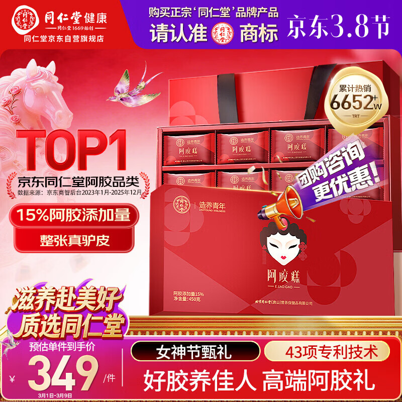 同仁堂阿胶糕450g阿胶即食阿胶糕礼盒滋补品气血女送长辈妈妈妇女节礼物