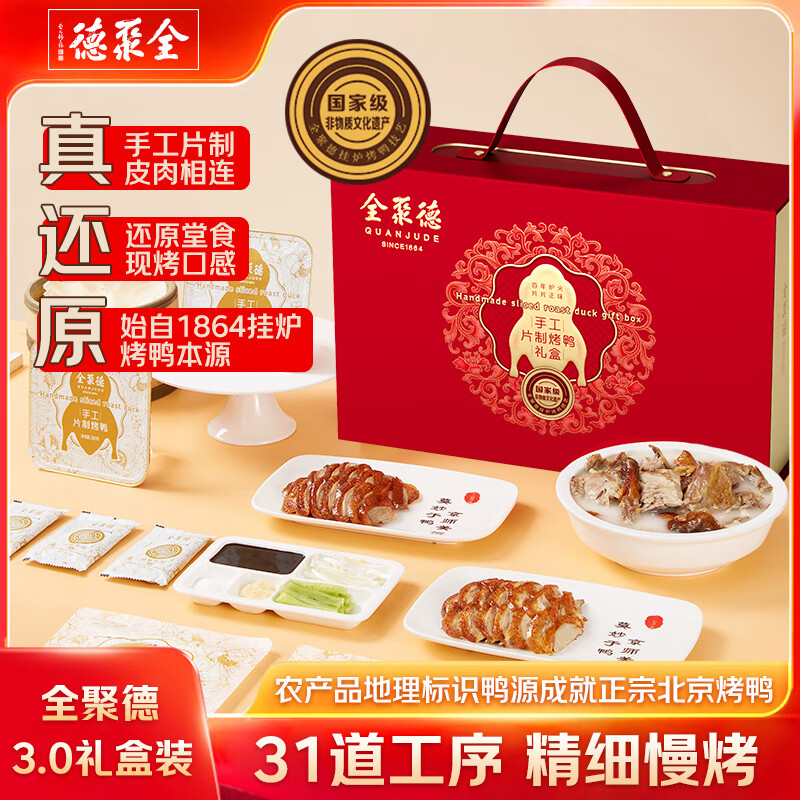 全聚德 手工片制烤鸭3.0礼盒1464g 北京烤鸭 北京特产送礼高档礼品 冷冻