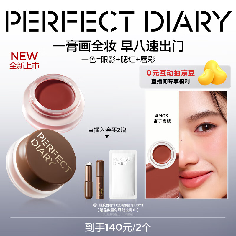 完美日记(PERFECT DIARY)唇颊膏多用膏清透水光肌精华修容口红唇釉腮红 M03「杏子雪绒」
