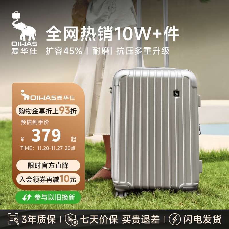 爱华仕行李箱女拉杆箱男旅行箱大容量密码箱24英寸可扩展学生箱星光银
