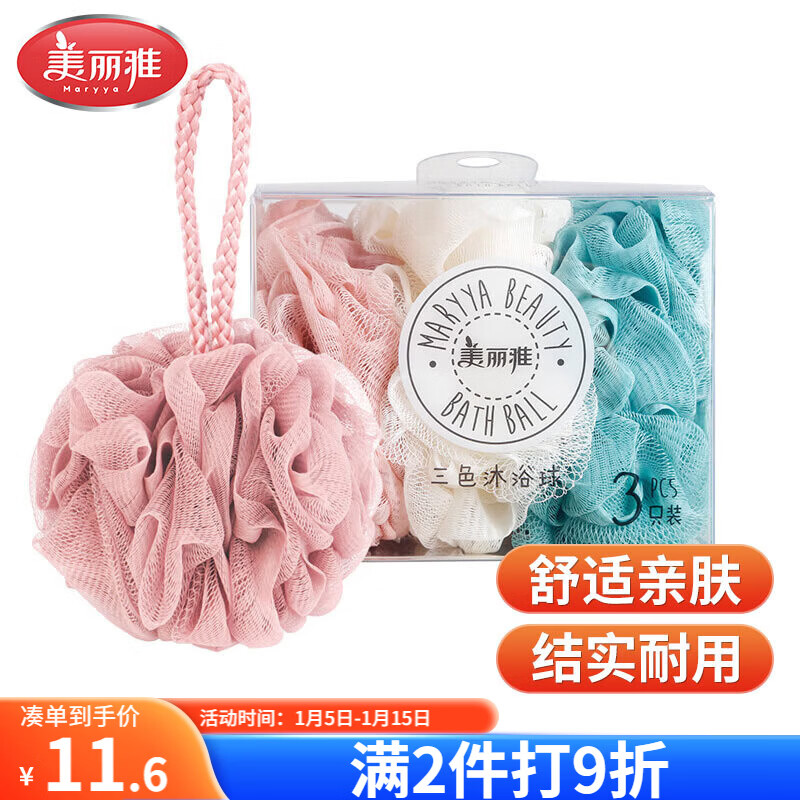 美丽雅沐浴球浴花【3只装】泡澡搓澡神器不散男士女起泡网洗浴球澡花