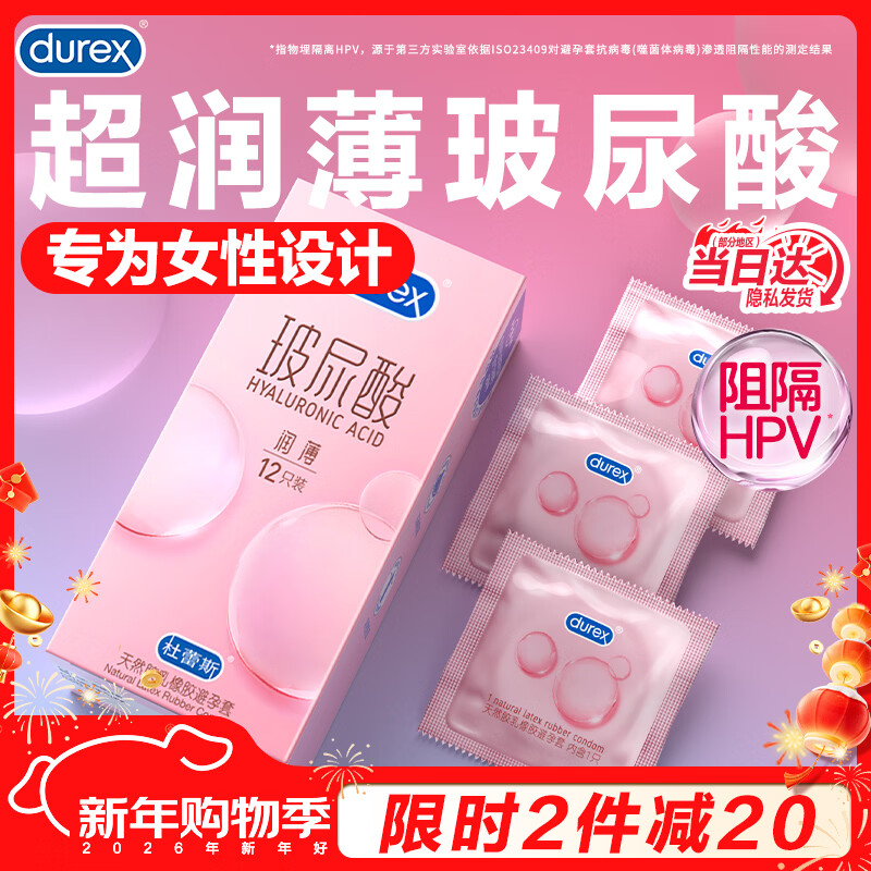 杜蕾斯(durex)玻尿酸避孕套 超薄润薄小水库安全套 润滑男女用套套成人情趣用品 【2件减10】玻尿酸超薄12只