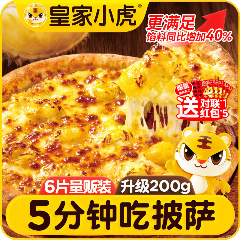皇家小虎 披萨6片/1200g榴莲2+牛肉2+培根2空气炸锅半成品速食源头直发