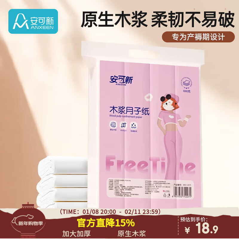 安可新 月子纸孕产妇刀纸大号40*50原生木浆卫生纸产褥期姨妈生理1000g