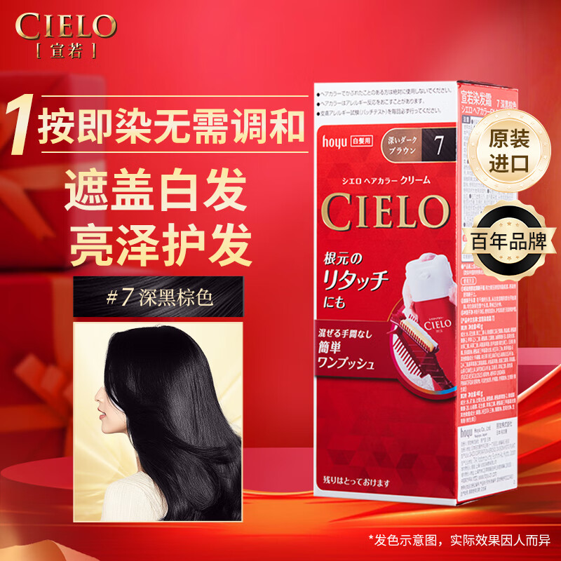 宣若(CIELO)染发霜 80g(深黑棕色7) 进口染发膏 植物配方快速遮白