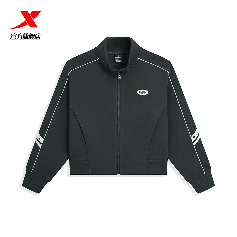 特步门店同款针织上衣女25秋季开衫立领健身跑步夹克外套975328060009 牛角灰 3XL