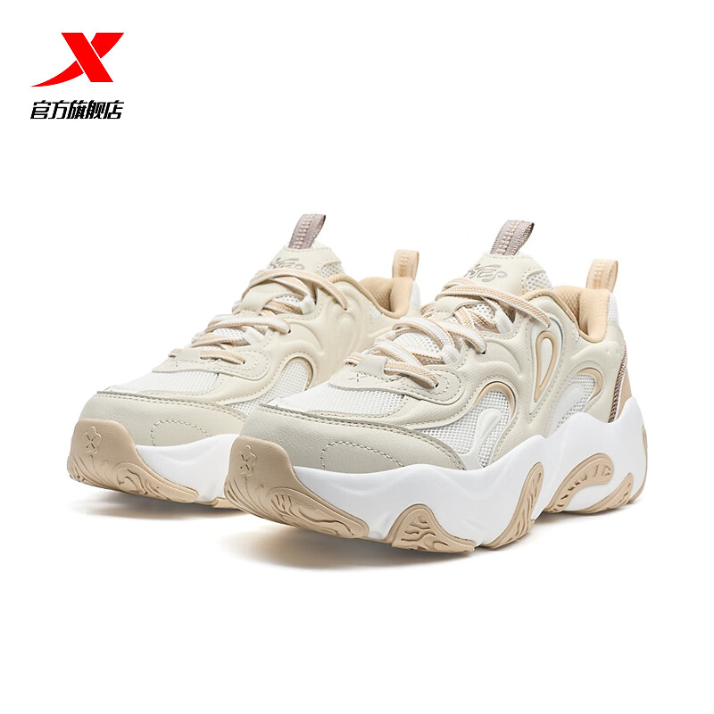 特步门店同款花瓣鞋3.0女2025年秋季新品增高运动休闲鞋975318320008 茶白色/帆白 36