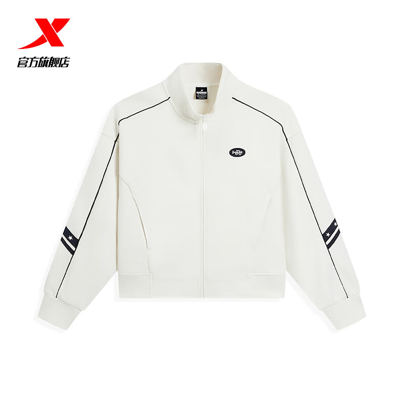 特步门店同款针织上衣女25秋季开衫立领健身跑步夹克外套975328060009 雨蒙白 XL