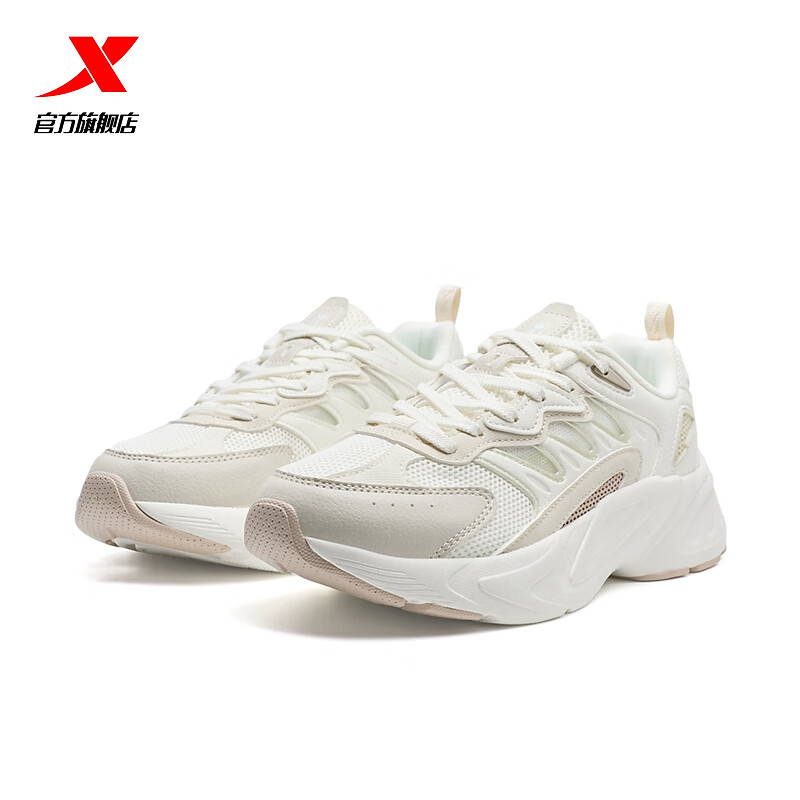 特步门店同款流派运动休闲鞋女2025秋增高厚底休闲运动鞋975318320010 帆白/白沙灰/粉棕褐 39