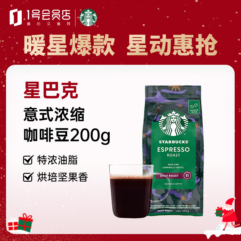 星巴克(Starbucks)深度烘焙咖啡豆浓缩黑咖啡进口咖啡200g可做20杯