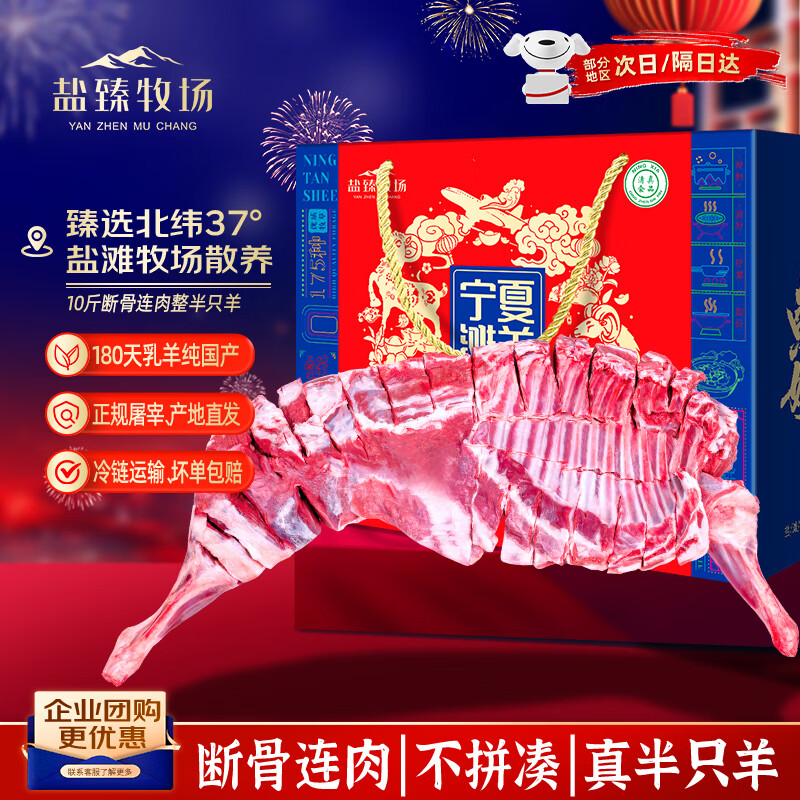 盐臻牧场宁夏滩羊肉半只羊10斤生鲜羊肉羊腿烧烤食材年货礼盒 源头直发