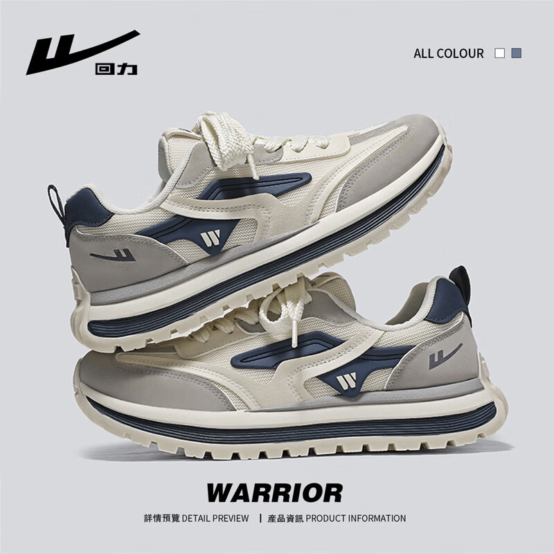 回力男鞋2025年秋冬新款运动鞋男士透气缓震防滑休闲鞋子 米灰深蓝 42