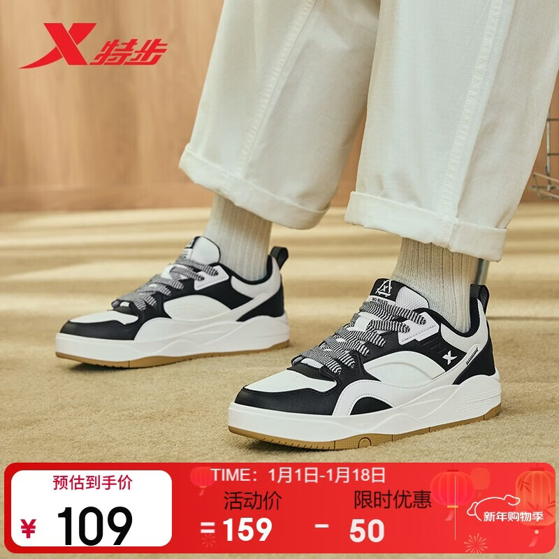特步男鞋鞋子男驭桀冬季保暖户外运动板鞋时尚百搭 黑/帆白 42码