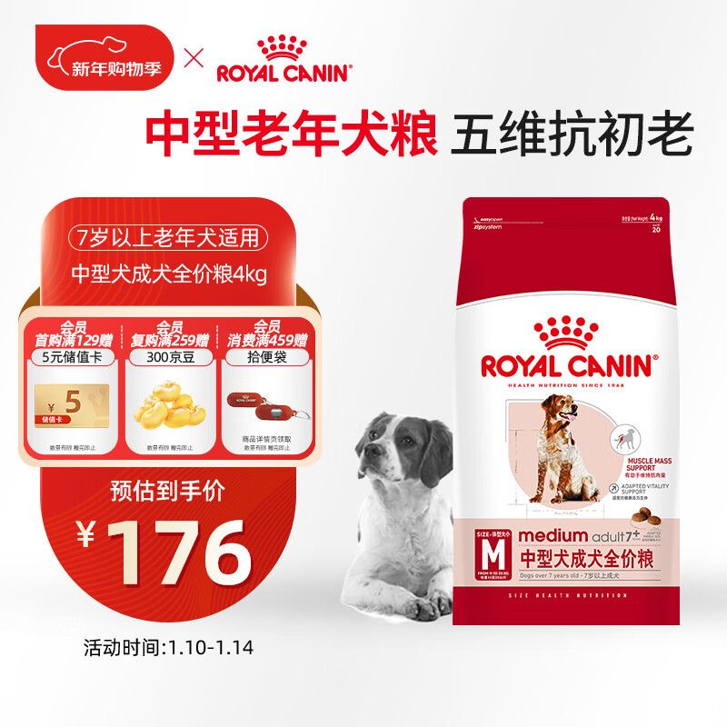 皇家狗粮 成犬狗粮 犬粮 宠物 中型犬 SMA25 全价犬粮 ≥7岁 4KG