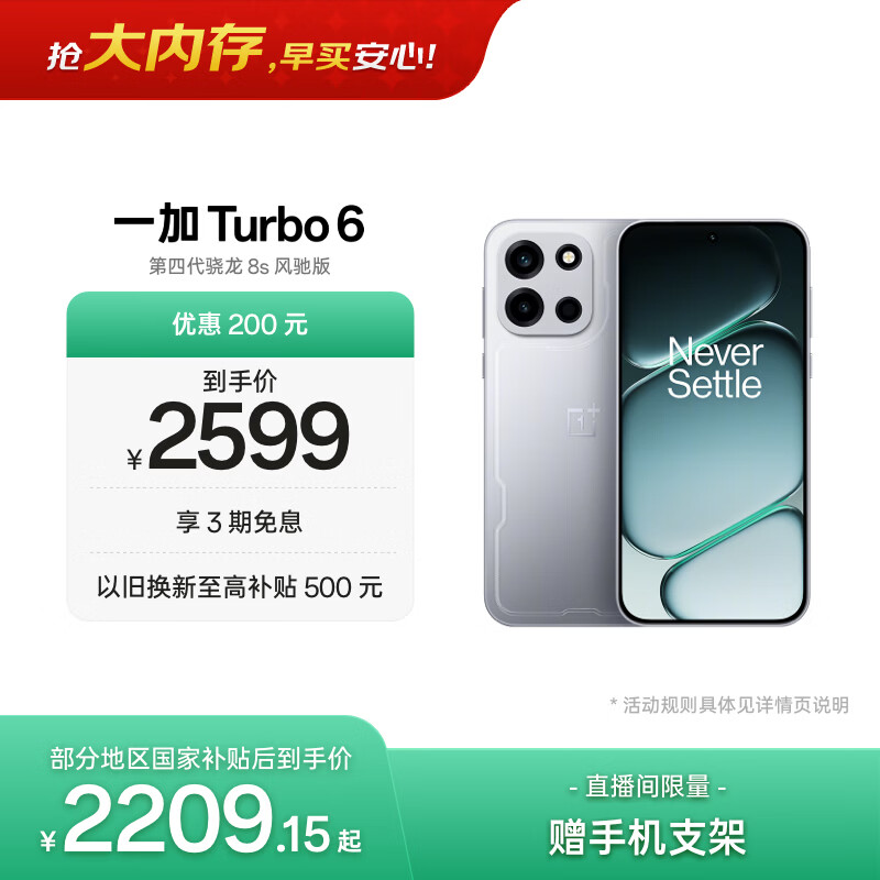 一加 Turbo 6 12GB+512GB 追光银 oppo 9000mAh冰川电池 165Hz高刷东方屏 智能游戏电竞手机 国家补贴