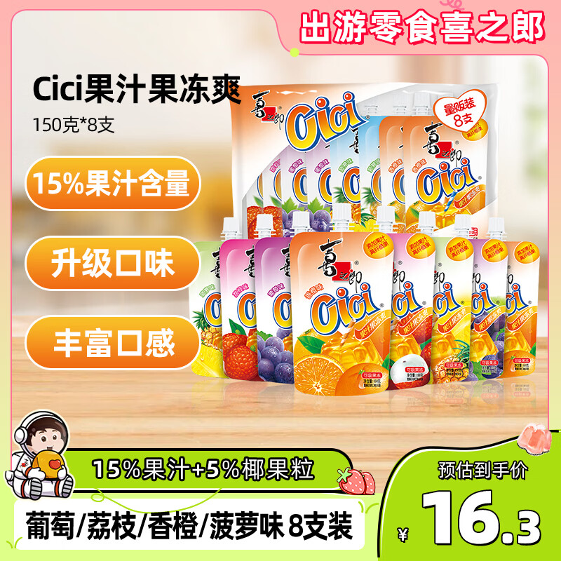 喜之郎果汁果冻爽150g*8支吸的可吸果冻 儿童休闲38节解馋小零食