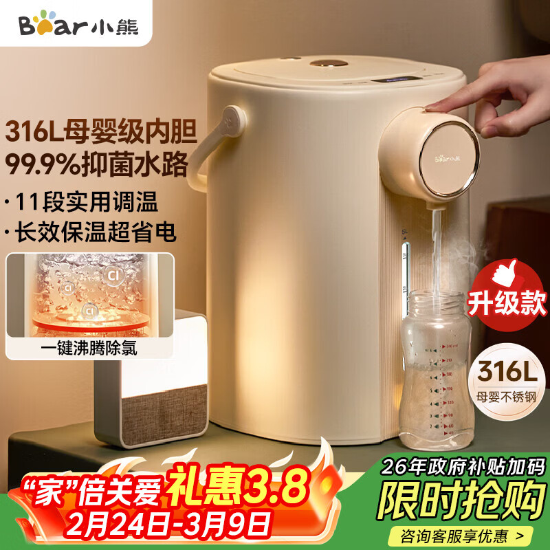 小熊(Bear)恒温热水壶一体机 电热水瓶 防烫除氯电水瓶316L母婴级烧水壶多段保温5L电水壶 暖吨吨 ZDH-H50R6
