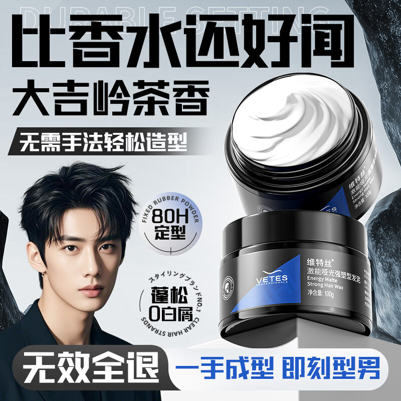 维特丝男士哑光强力塑型发泥自然蓬松持久定型发蜡发胶发膏发油清爽造型