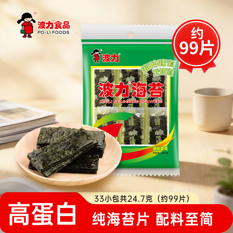 波力海苔片休闲零食 儿童零食 网红小吃 即食条斑紫菜原味24.7g约33包