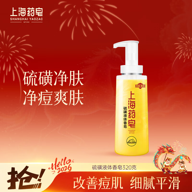 上海药皂香皂硫磺皂沐浴男女士液体香皂净痘乳液洗澡肥皂320g(包装随机)