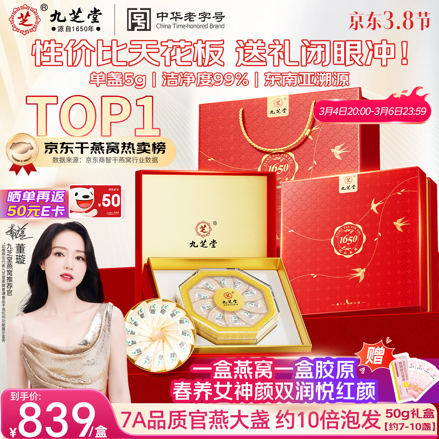 九芝堂干燕窝干盏50g 送妈妈长辈礼品东南亚进口妇女节礼物38女神节礼盒
