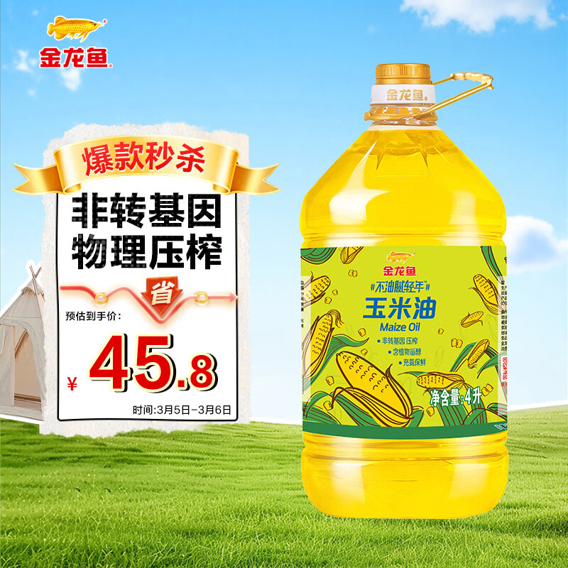 金龙鱼 食用油 非转基因 物理压榨不油腻轻年玉米油4L