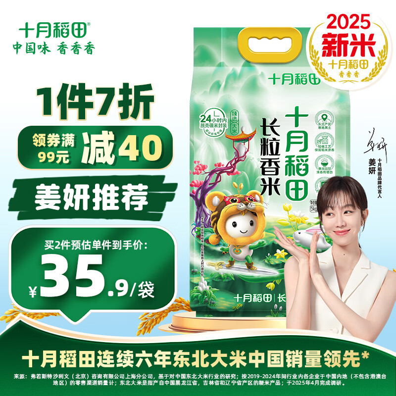十月稻田 【2025年新米上市】长粒香大米5kg 东北大米10斤 团购福利 年货