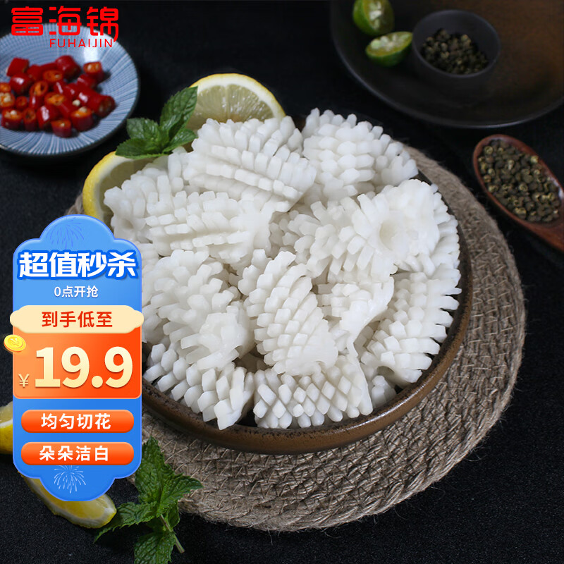 富海锦冷冻鱿鱼花400g 鲜捕鲜切 火锅烧烤食材 海鲜生鲜软足类 年货送礼