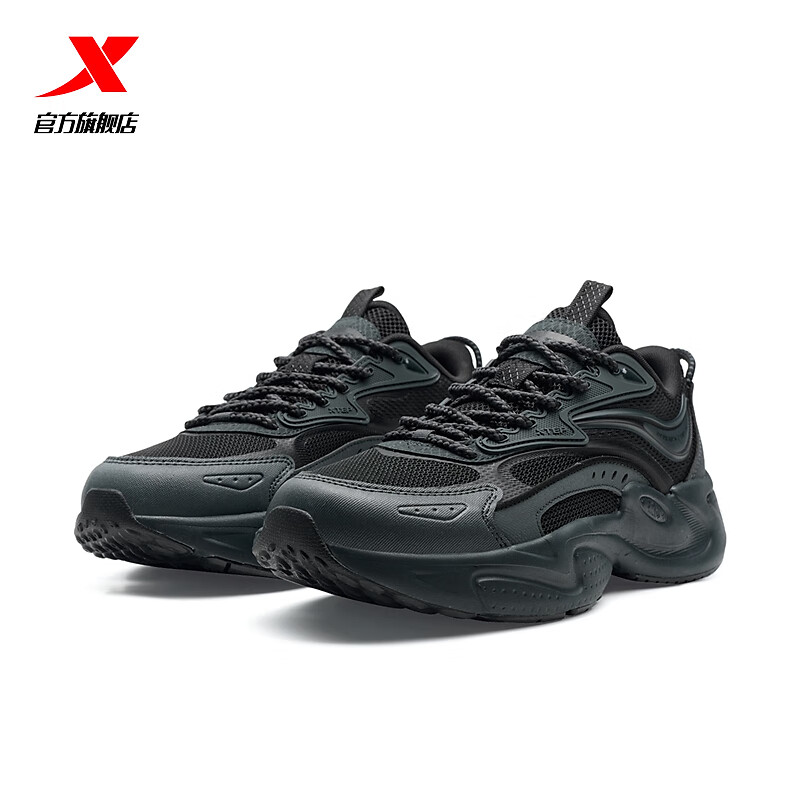 特步门店同款元启3.0运动休闲男鞋2025夏新品复古增高鞋975319320004 黑/煤黑 39