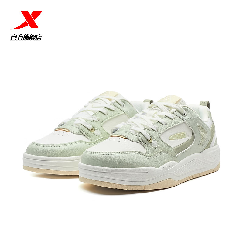 特步【摩登天空】云帆|板鞋2025夏季休闲鞋女运动鞋975318310060 凝脂绿/帆白/仓灰色 40