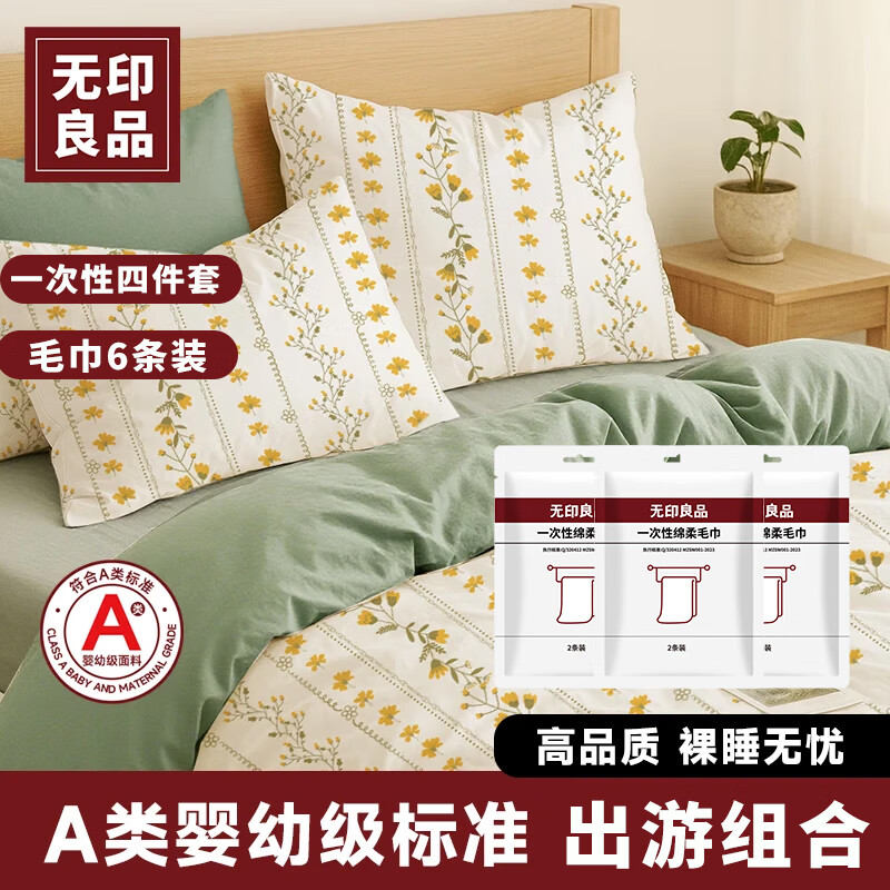 一次性四件套床上用品被套枕套床单旅行加厚床单毛巾浴巾旅行组合