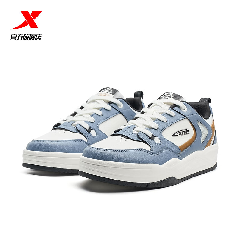 特步门店同款云帆休闲男鞋2025夏季新品复古休闲运动板鞋975319310017 景元蓝/帆白/砂砾棕 43