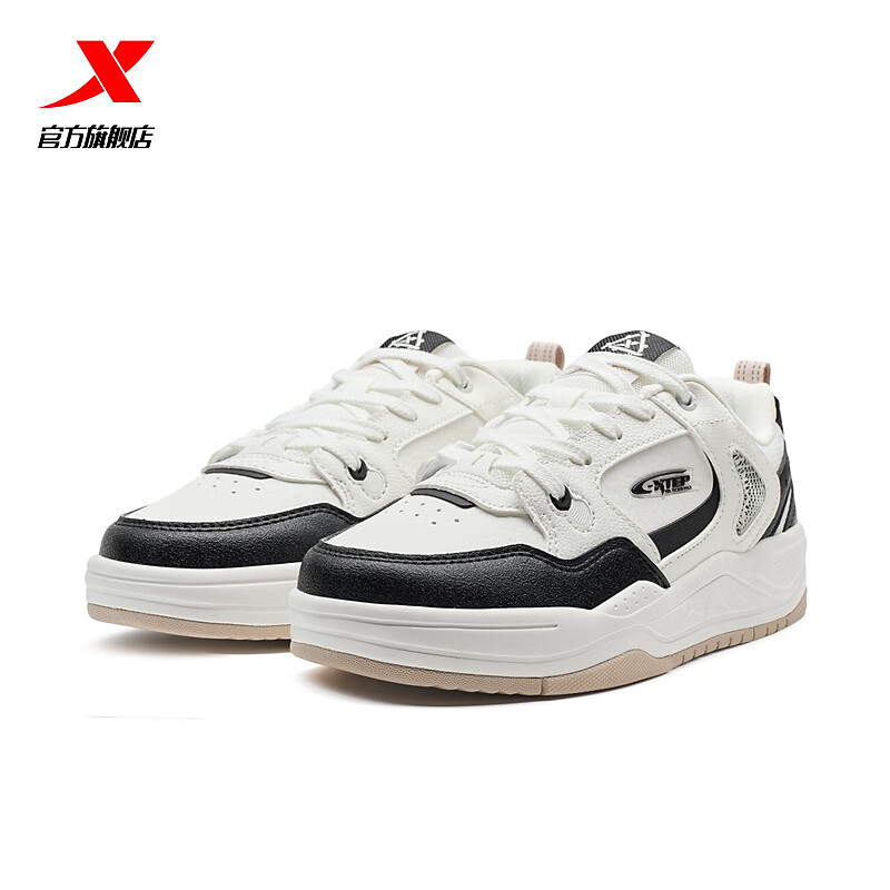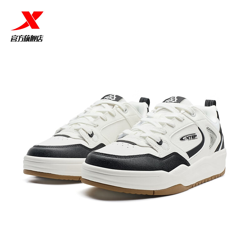 特步门店同款云帆休闲男鞋2025夏季新品复古休闲运动板鞋975319310017 帆白/黑 44