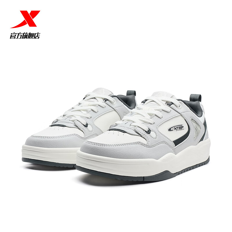 特步门店同款云帆休闲男鞋2025夏季新品复古休闲运动板鞋975319310017 幻影灰/帆白/煤黑 45