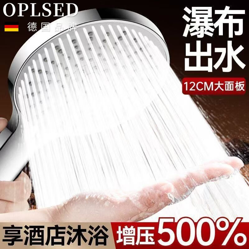 OPLSED【德国】大面板五档增压花洒淋浴家用加压单喷头银白色 OP-HS2001