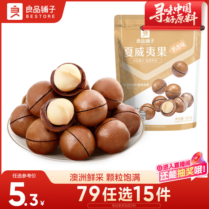 良品铺子奶香夏威夷果60g干果每日坚果孕妇休闲零食袋装儿童零食休闲小吃