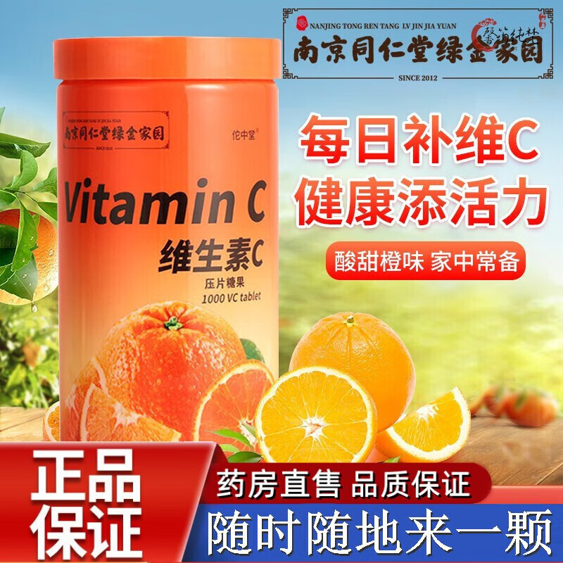 南京同仁堂维生素C1000vc咀嚼片儿童含片ce维他命VC 1瓶