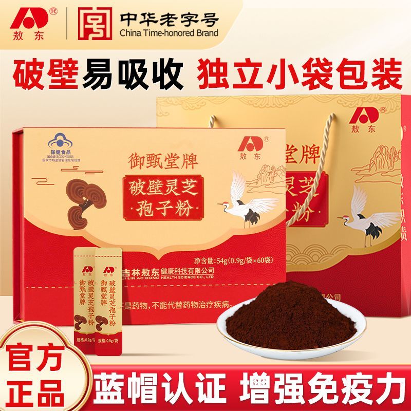 敖东长白山破壁灵芝孢子粉0.9g*60/袋增强免疫力送礼送长辈保健品 礼盒一盒装
