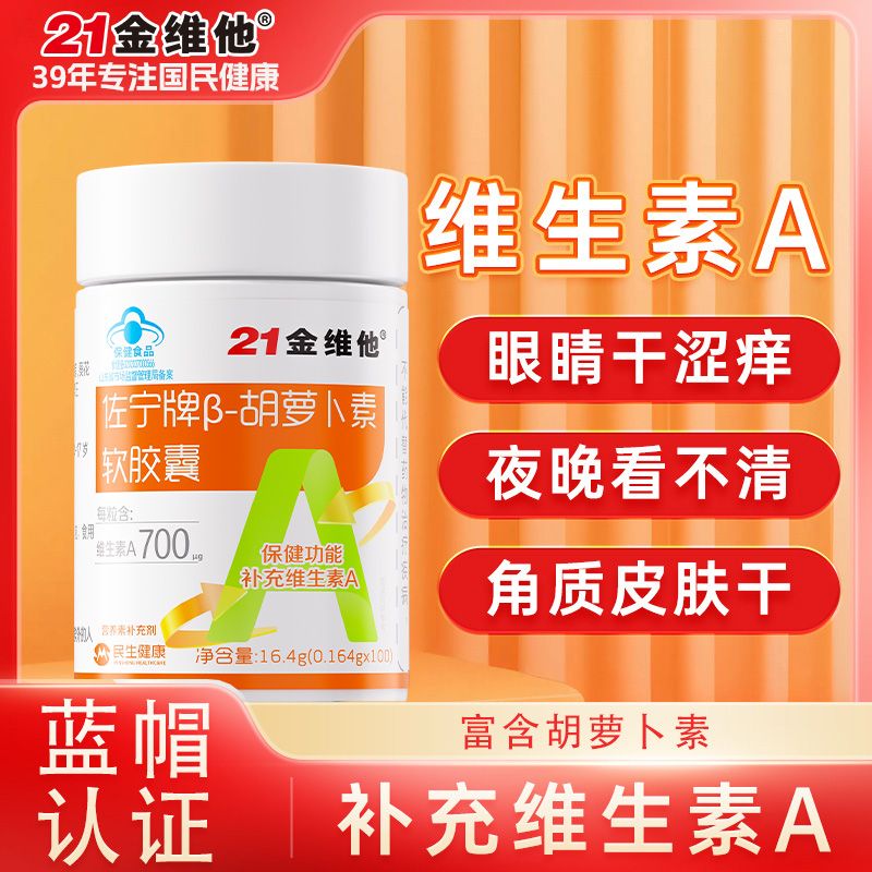 21金维他β胡萝卜素软胶囊100粒护青少年眼干涩疲劳补维生素A 1瓶装100粒【不划算】