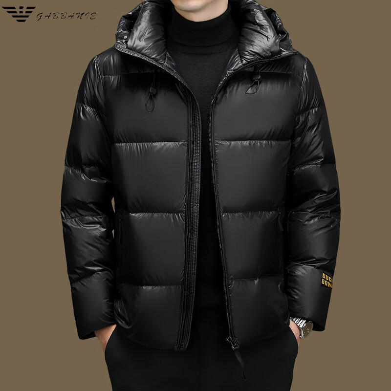 AX 阿玛尼 高端品牌冬季男士黑金服连帽鹅绒时尚加厚保暖外套男装 黑色 黑金服 M 170码
