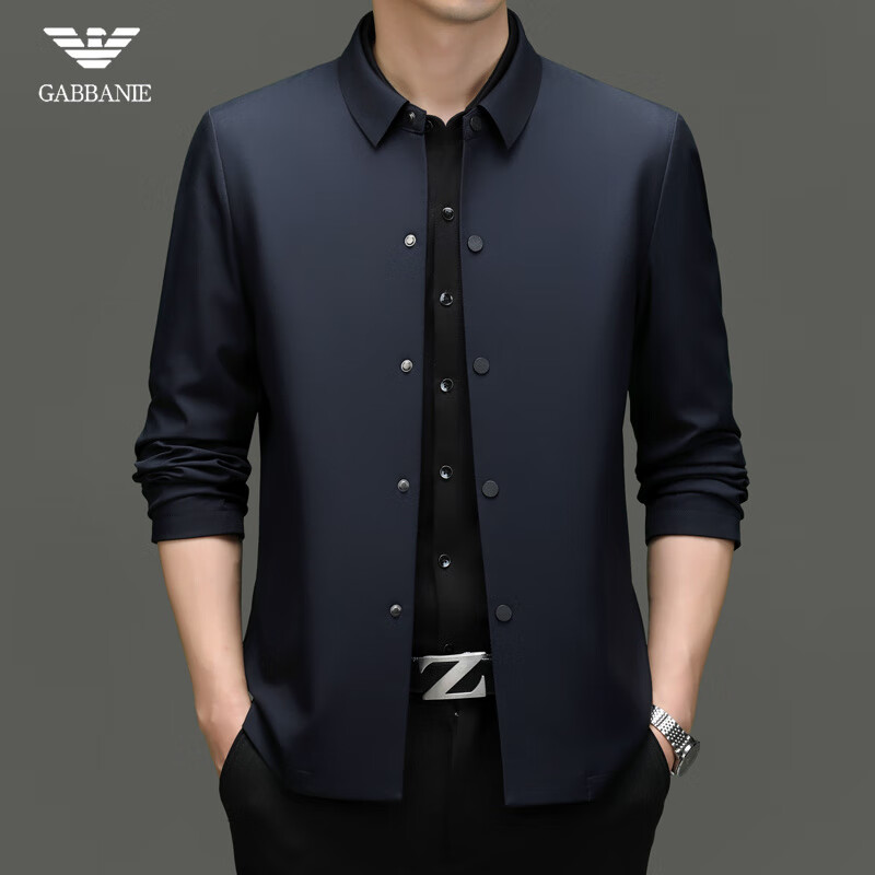 AX 阿玛尼 高端品牌翻领外套男士春秋中商务休闲夹克春季茄克男装 QWJ-Sz3513藏青 翻领 M 170