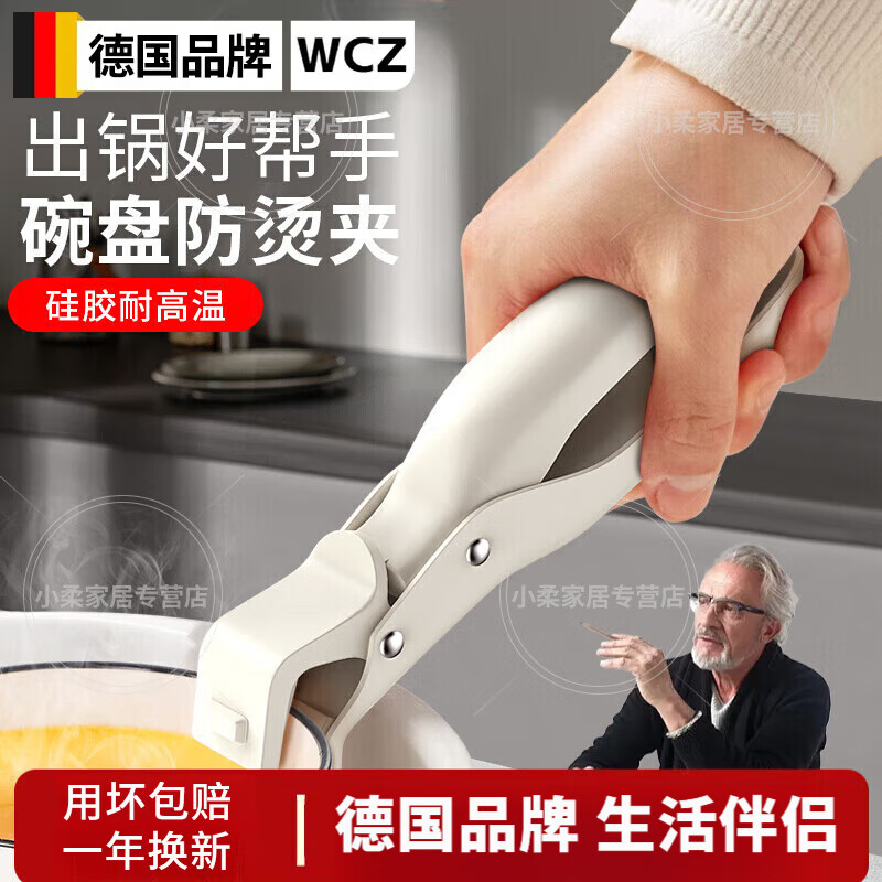 WCZ德国品牌高端防烫夹取碗夹新款硅胶防滑厨房多功能夹菜盘烤盘蒸锅 暖白色取碗夹硅胶防滑