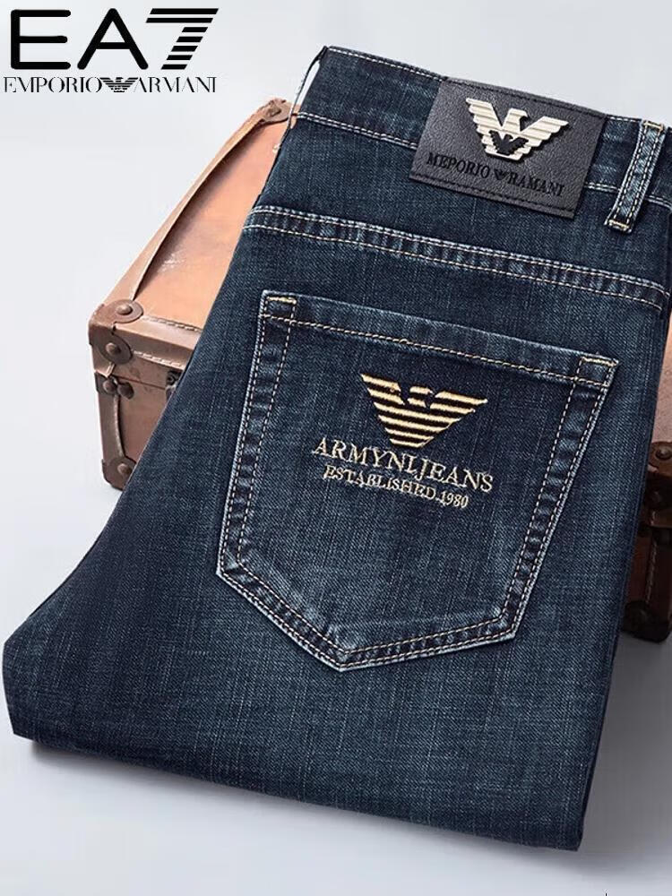 阿玛尼阿玛尼2025新款牛仔裤男士修身直筒刺绣蓝色休闲长裤子薄款秋季 31