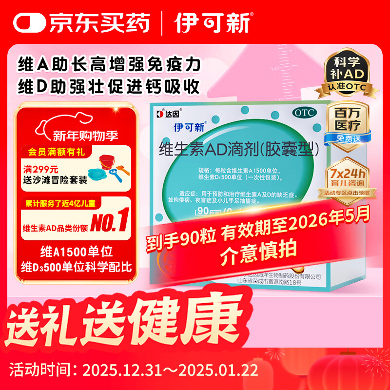 【有效期至2026年5月31日】维生素ad滴剂(胶囊型)0-1岁 婴儿ad 伊可新ad ad伊可新 新生儿
