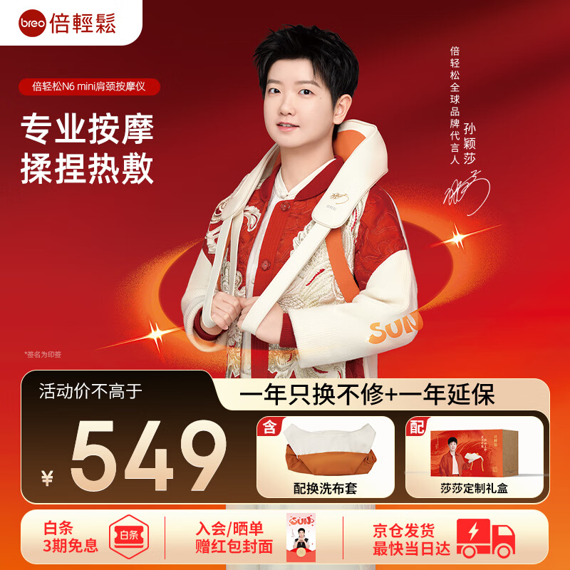 倍轻松(breo)N6mini【孙颖莎限量签名款】颈椎按摩仪器 按摩披肩肩颈按摩仪器斜方肌腿腰颈部按摩孙颖莎同款